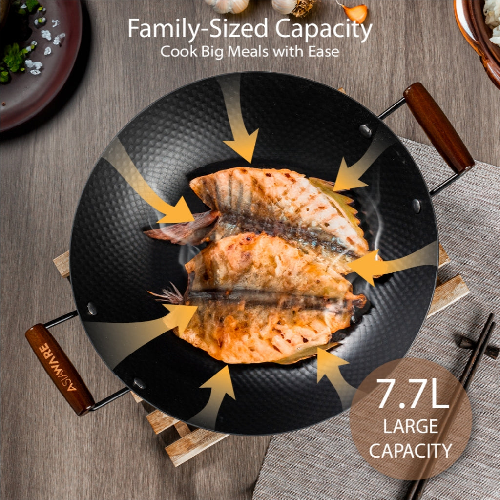 ASIAWARE Takamori Black Hammered Nitrigan Carbon Steel Iron 34cm Wok 28cm Steel Iron Stirfry Wok 20cm Iron Deep Frypan