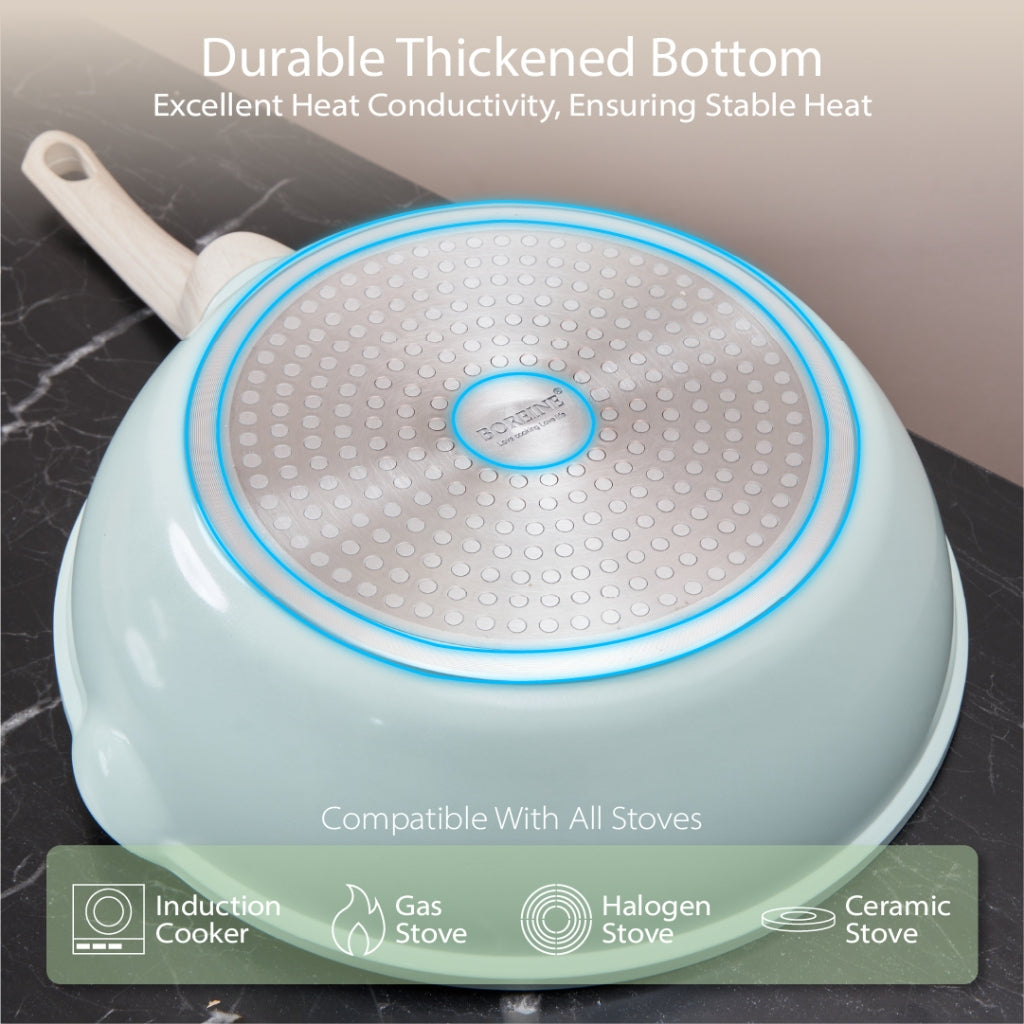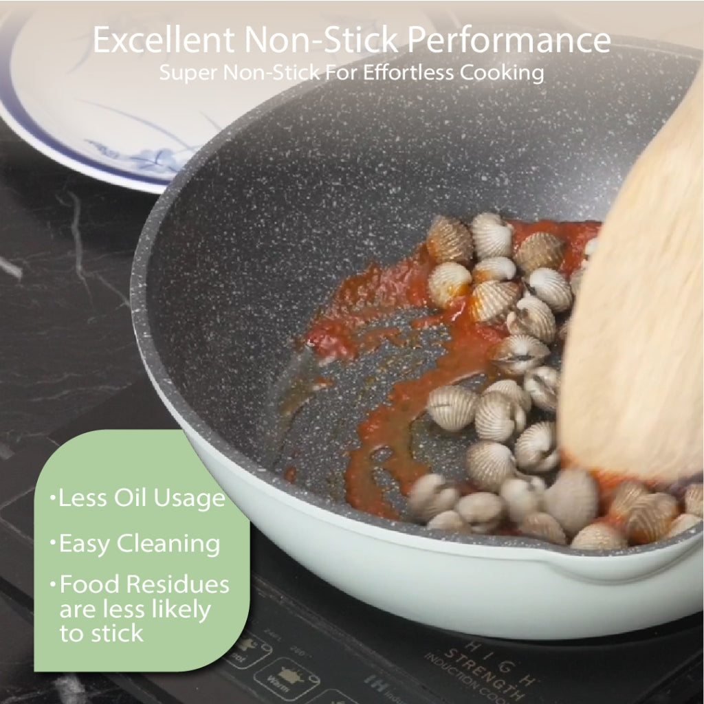 BOREINE Aquamint Non Stick Granite 30cm Stirfry Wok Deep Fry Pan Kuali Batu Granite Original (30cm)[Free Wooden Spatula]
