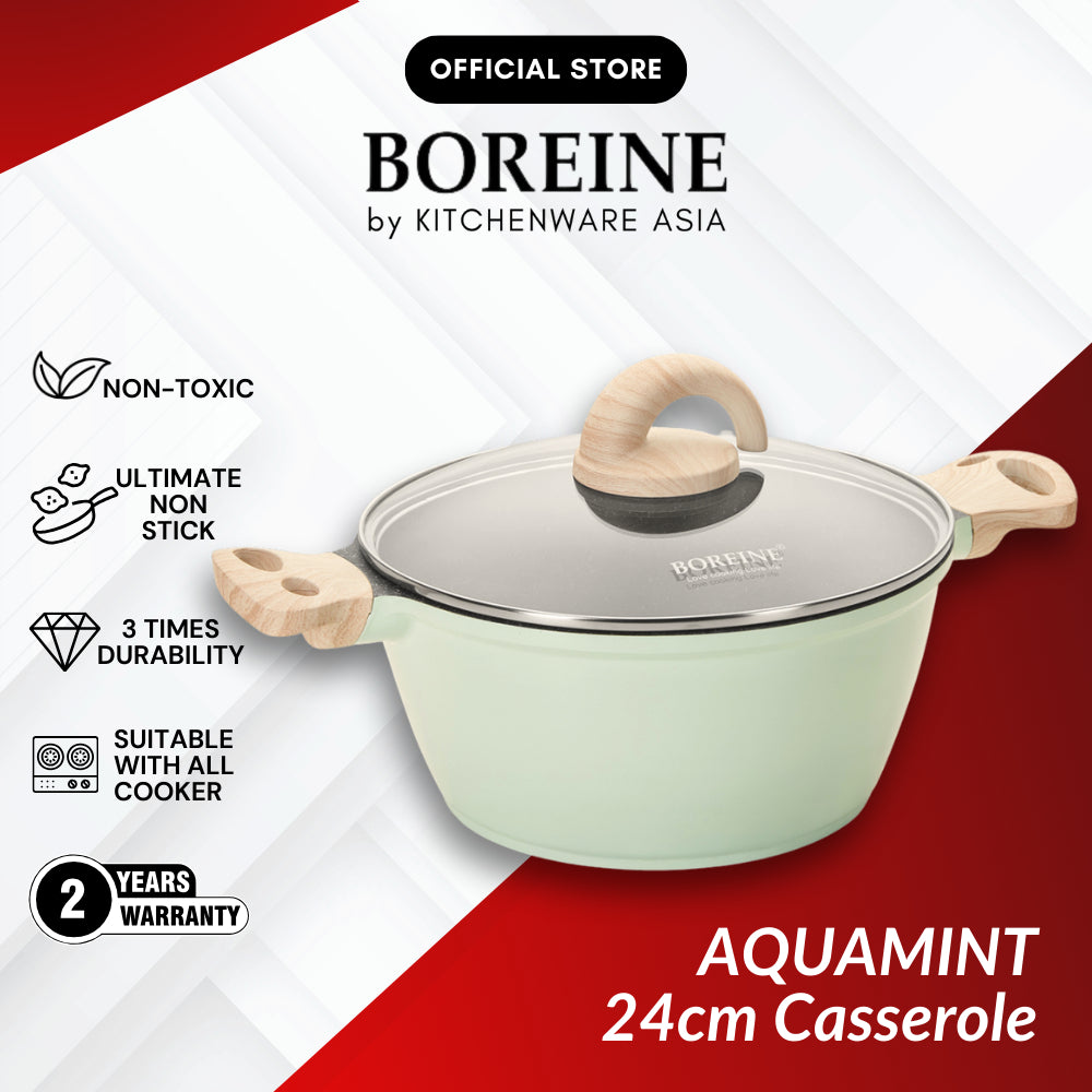 BOREINE AquaMint Non Stick Granite Cookware Kuali Periuk Batu Granite Original (18cm Saucepan / 26cm Frying Pan / 24cm Casserole Pot / 30cm Stir-fry Wok Deep Fry Pan)