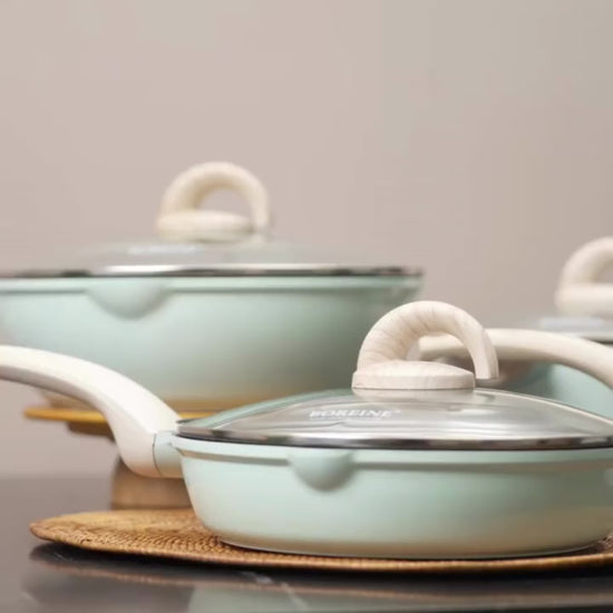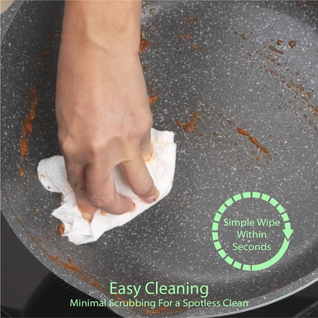 The non-stick surface makes the cookware easy to clean. Food residues are less likely to stick, and most of the time, a simple wipe with a soft sponge or cloth is sufficient.