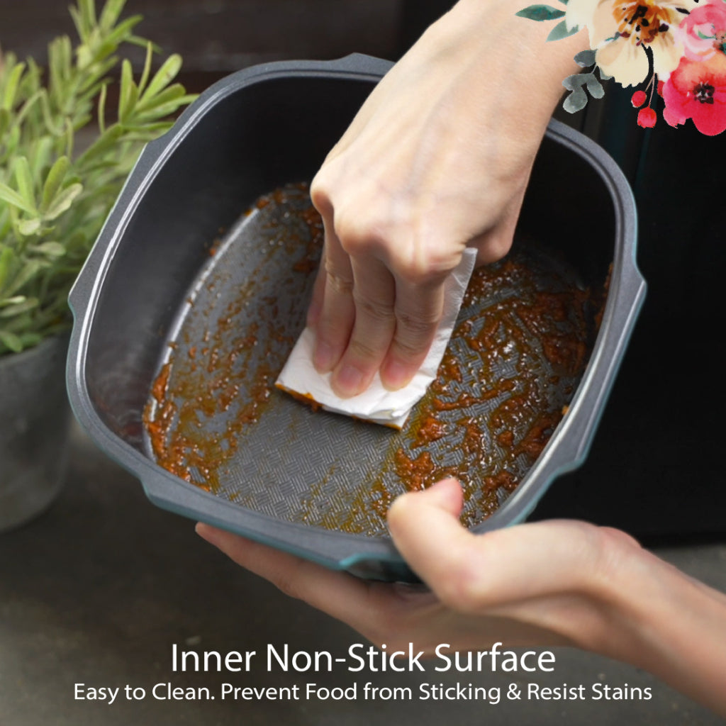 The inner surface of the glass fiber container is equipped with a non-stick coating to discourage food particles from sticking and resist stains, making it easier to clean after use.